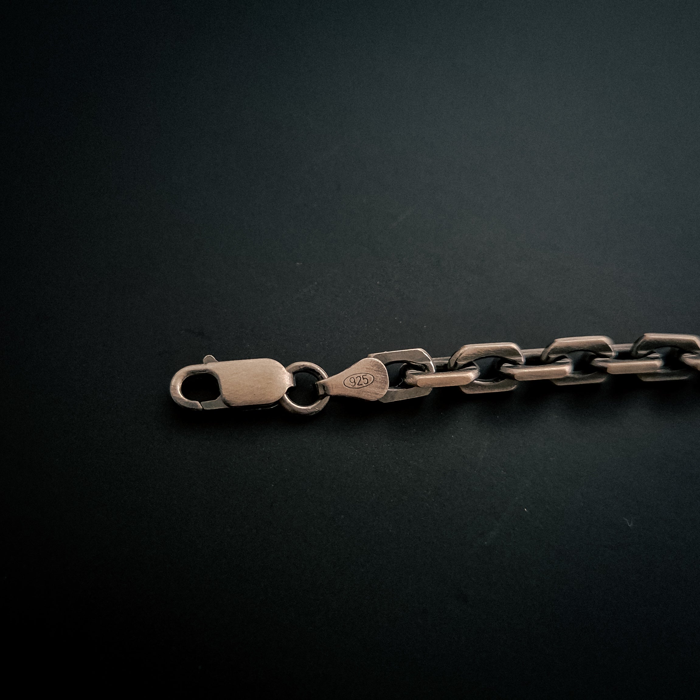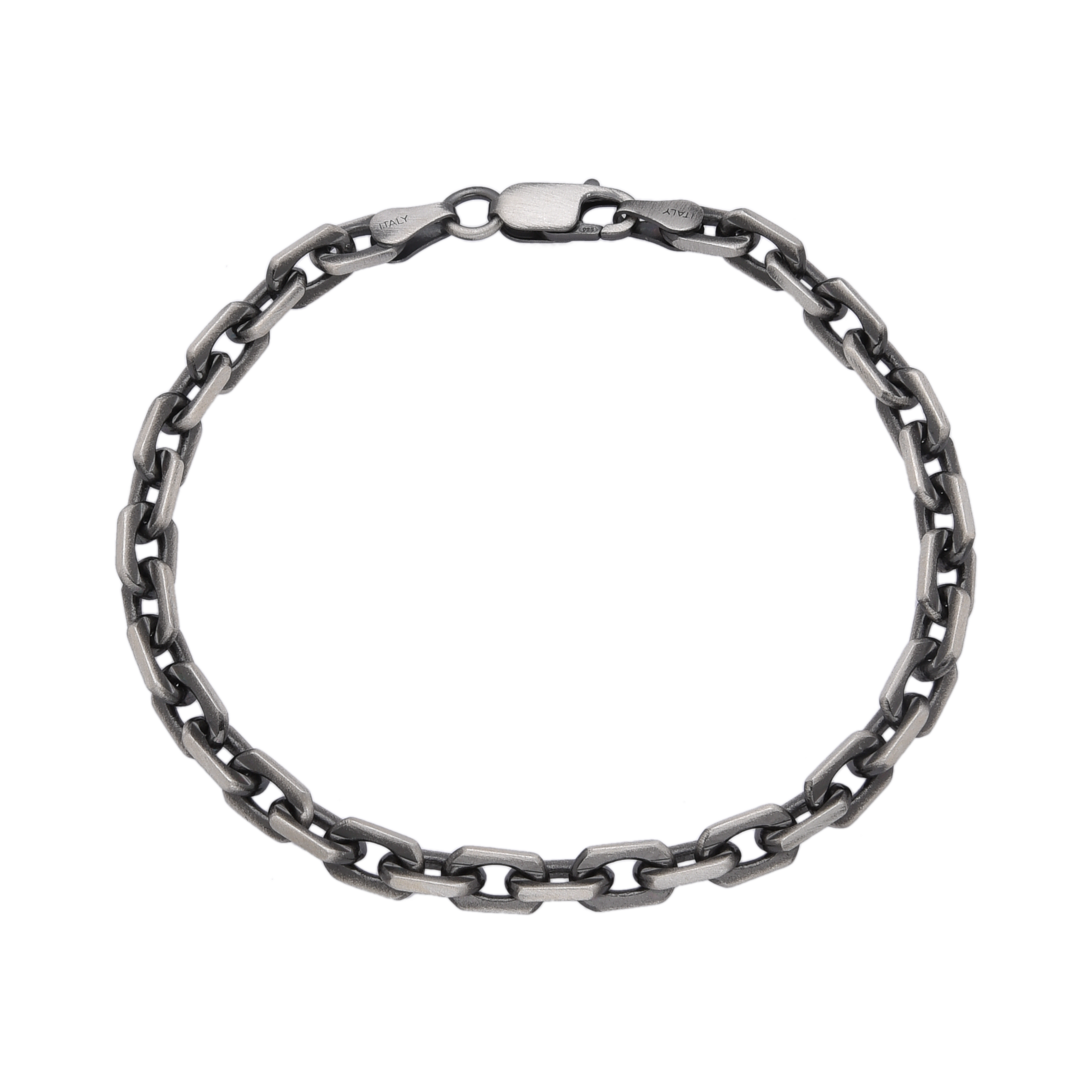 Meticulously crafted sterling silver links with ruthenium plating and a brushed gun-metal finish.