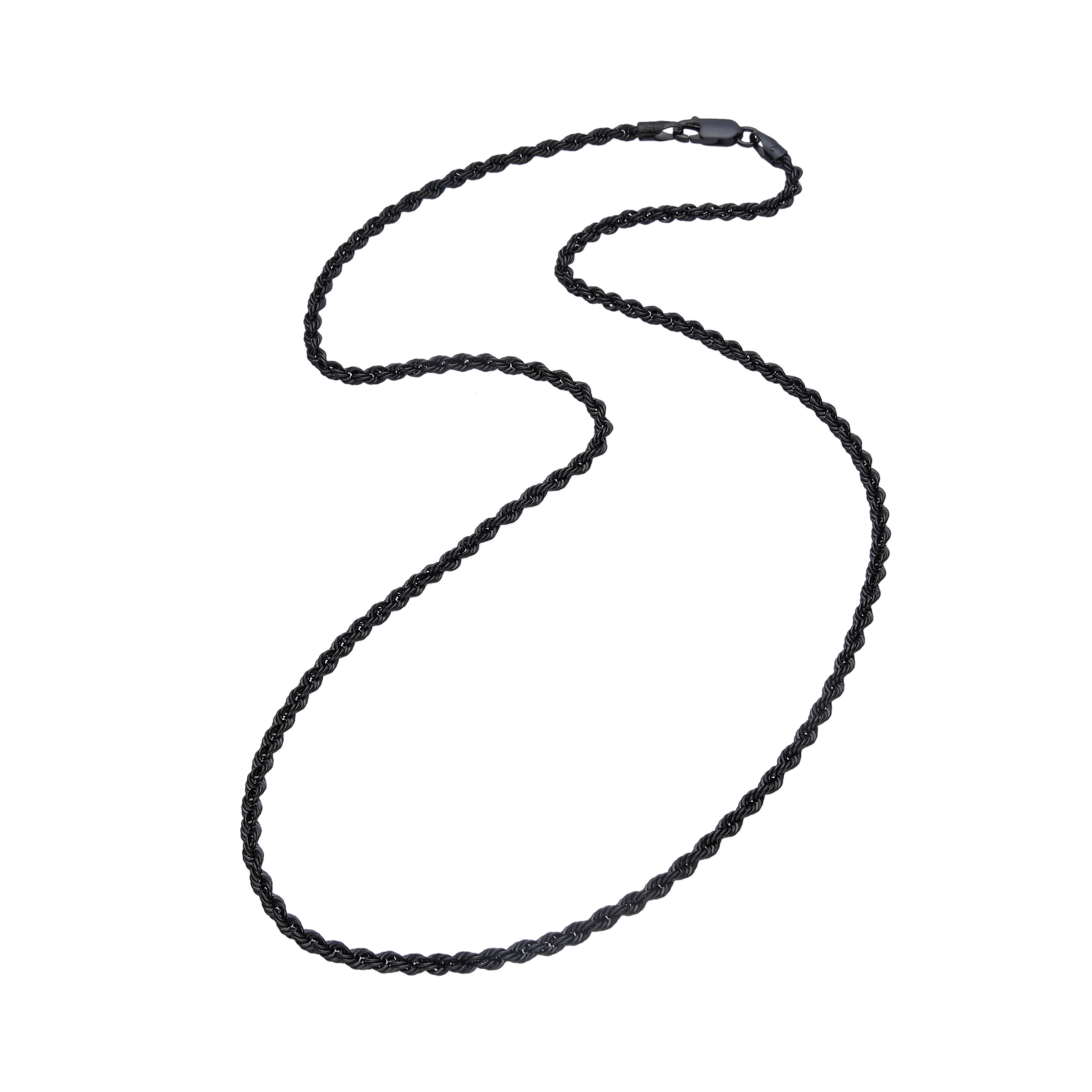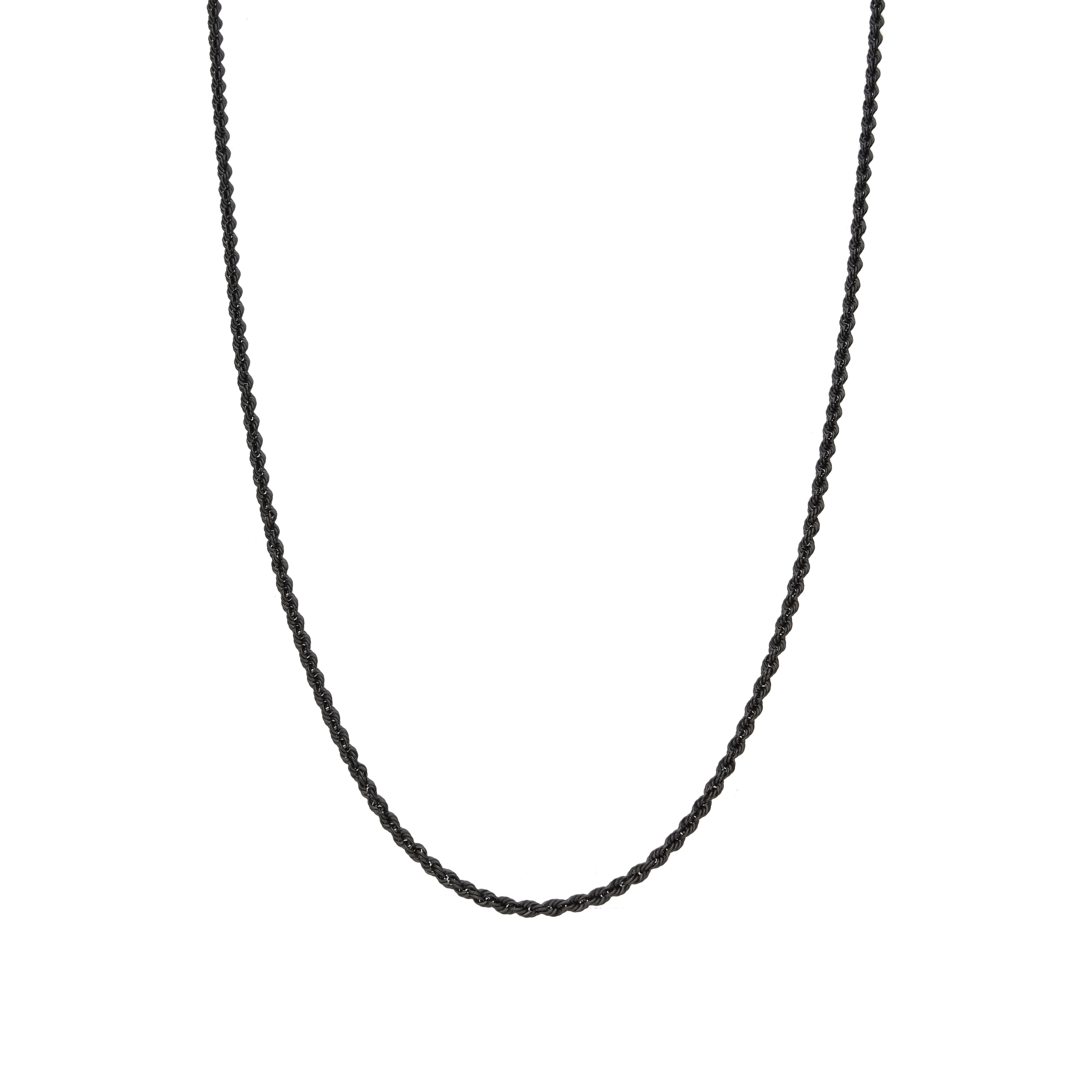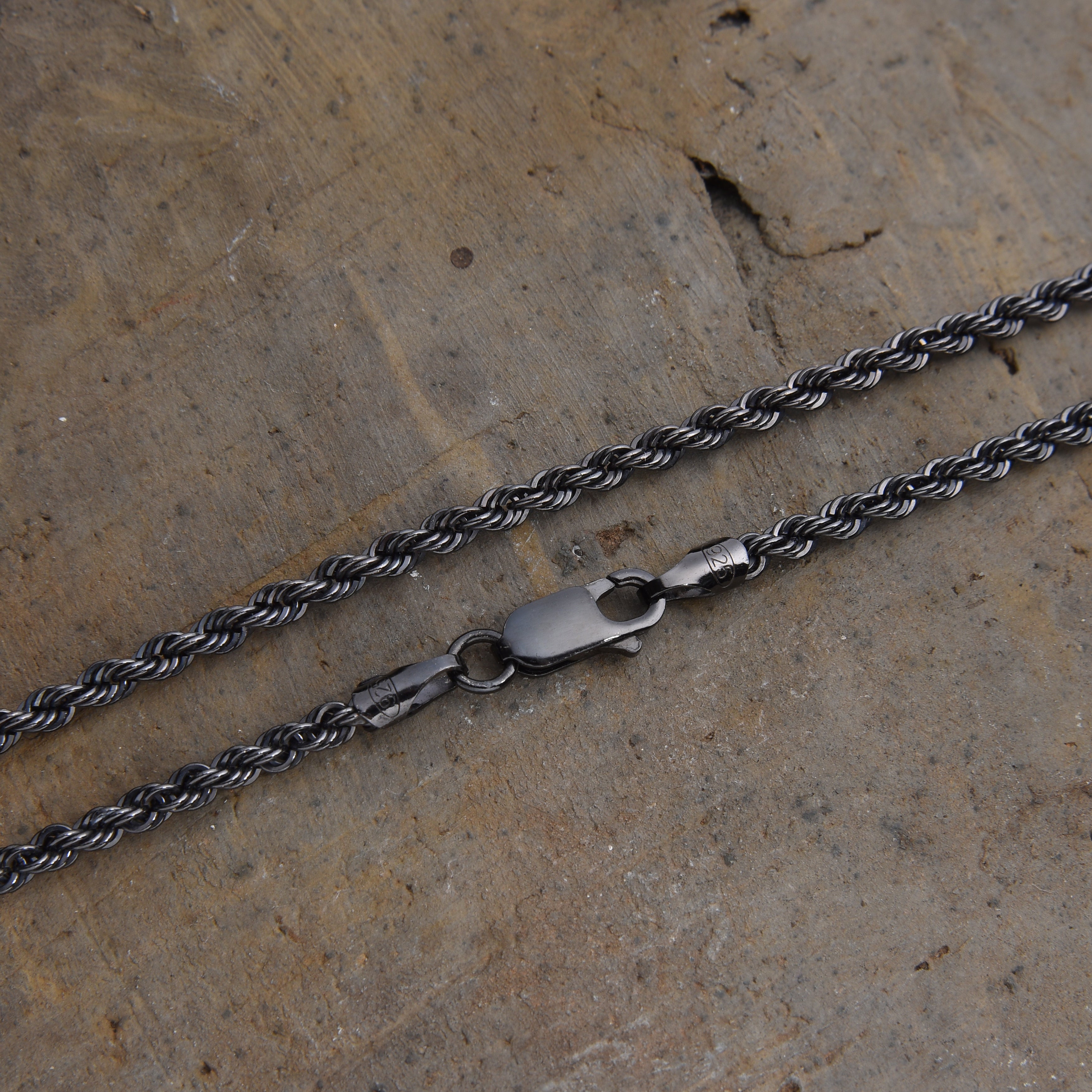 Sterling silver rope chain finished with ruthenium plating for a dark, polished look. Durable and versatile, perfect for pairing with pendants.